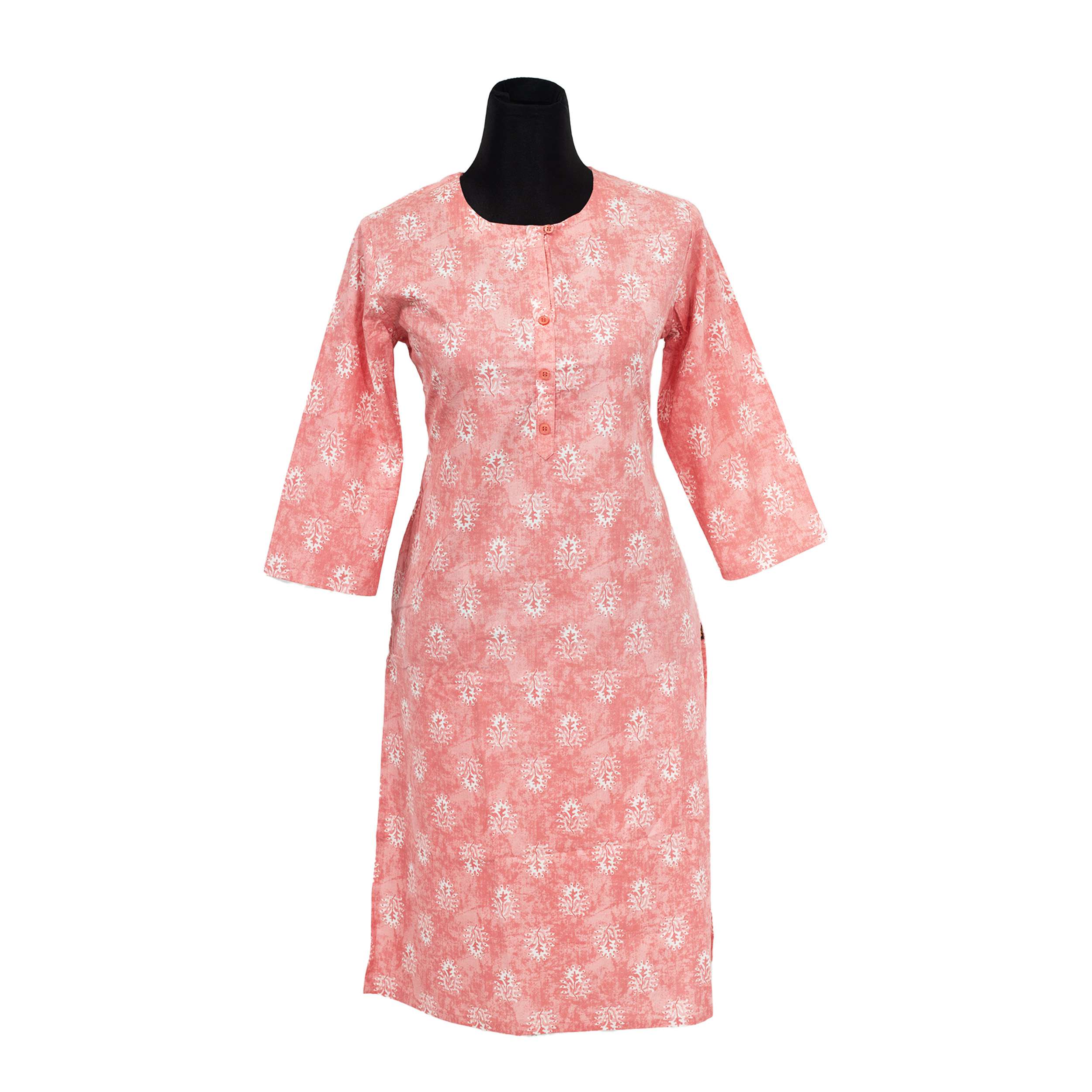 The kurta features a classic round neckline and three-quarter sleeves, providing a contemporary yet traditional silhouette. Its relaxed fit ensures ease of movement, making it suitable for all-day wear. Pair it with matching leggings or palazzos for a coordinated look, or style it with contrasting bottoms for a more eclectic ensemble.
