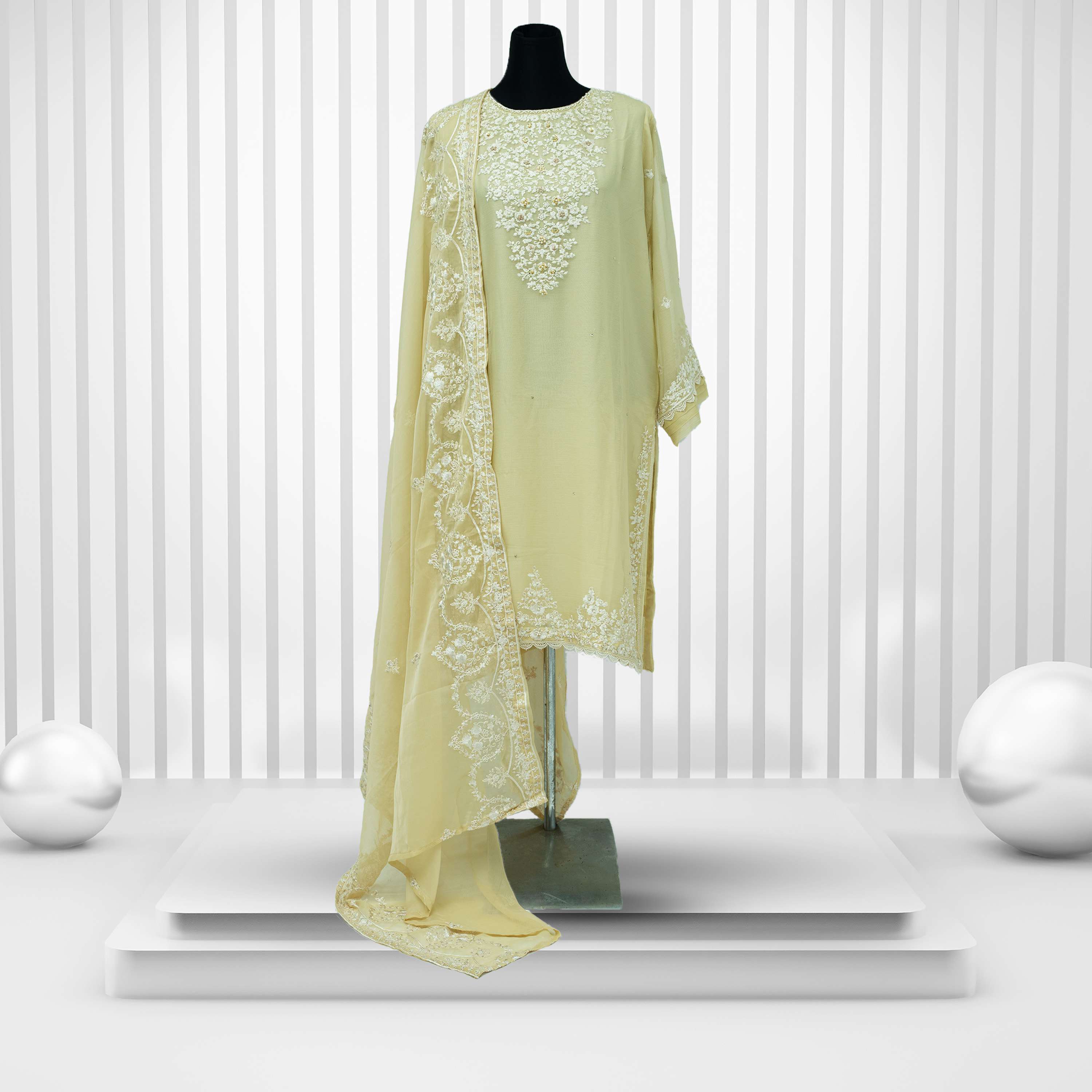 Agha Noor Master Copy Two Piece Set (Ivory)