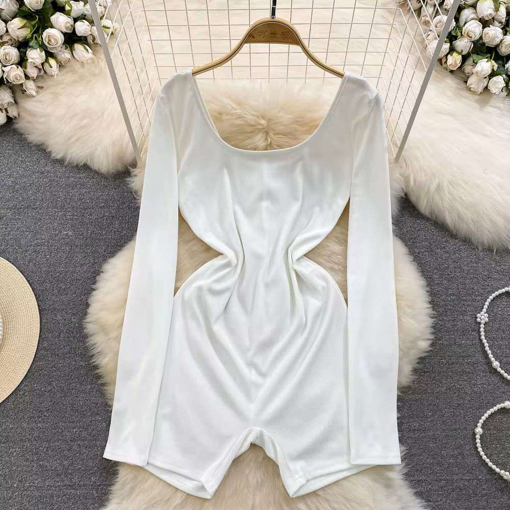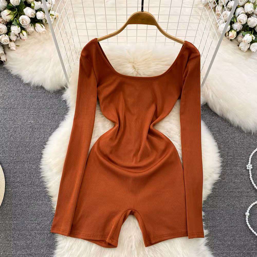 American Style V-neck Tunic Slim Jumpsuit For Women Long Sleeve High Waist Solid Lace Short Jumpsuit