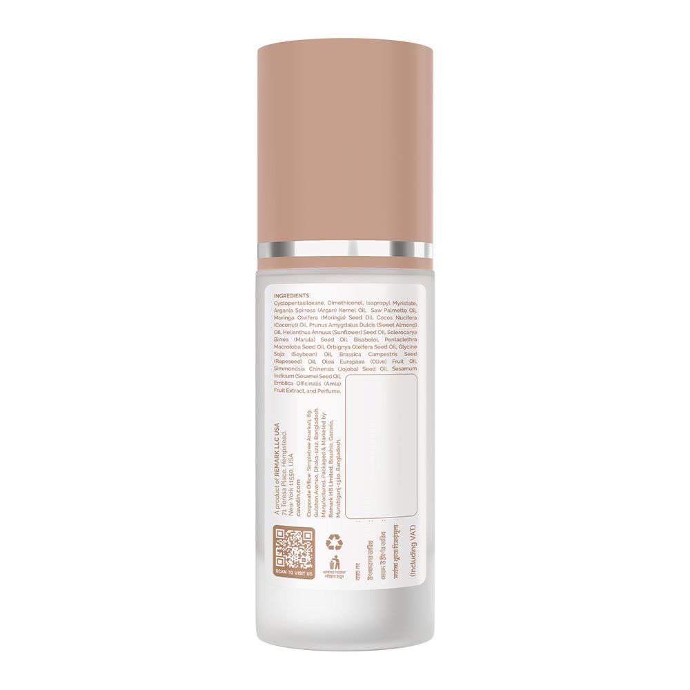 Cyclopentasiloxane, Dimethiconol, C15-19 Alkane, Isopropyl Myristate, Argania Spinosa (Argan) Kernel Oil, Saw Palmetto Oil, Moringa Oleifera (Moringa) Seed Oil, Cocos Nucifera (Coconut) Oil, Prunus Amygdalus Dulcis (Sweet Almond) Oil, Helianthus Annuus (Sunflower) Seed Oil, Sclerocarya Birrea (Marula) Seed Oil, Bisabolol, Pentaclethra Macroloba Seed Oil, Orbignya Oleifera Seed Oil, Glycine Soja (Soybean) Oil, Brassica Campestris Seed (Rapeseed) Oil, Olea Europaea (Olive) Fruit Oil, Simmondsia Chinensis (Jojoba) Seed Oil, Sesamum Indicum (Sesame) Seed Oil, Emblica officinalis (Amla) Fruit Extract, and Perfume.