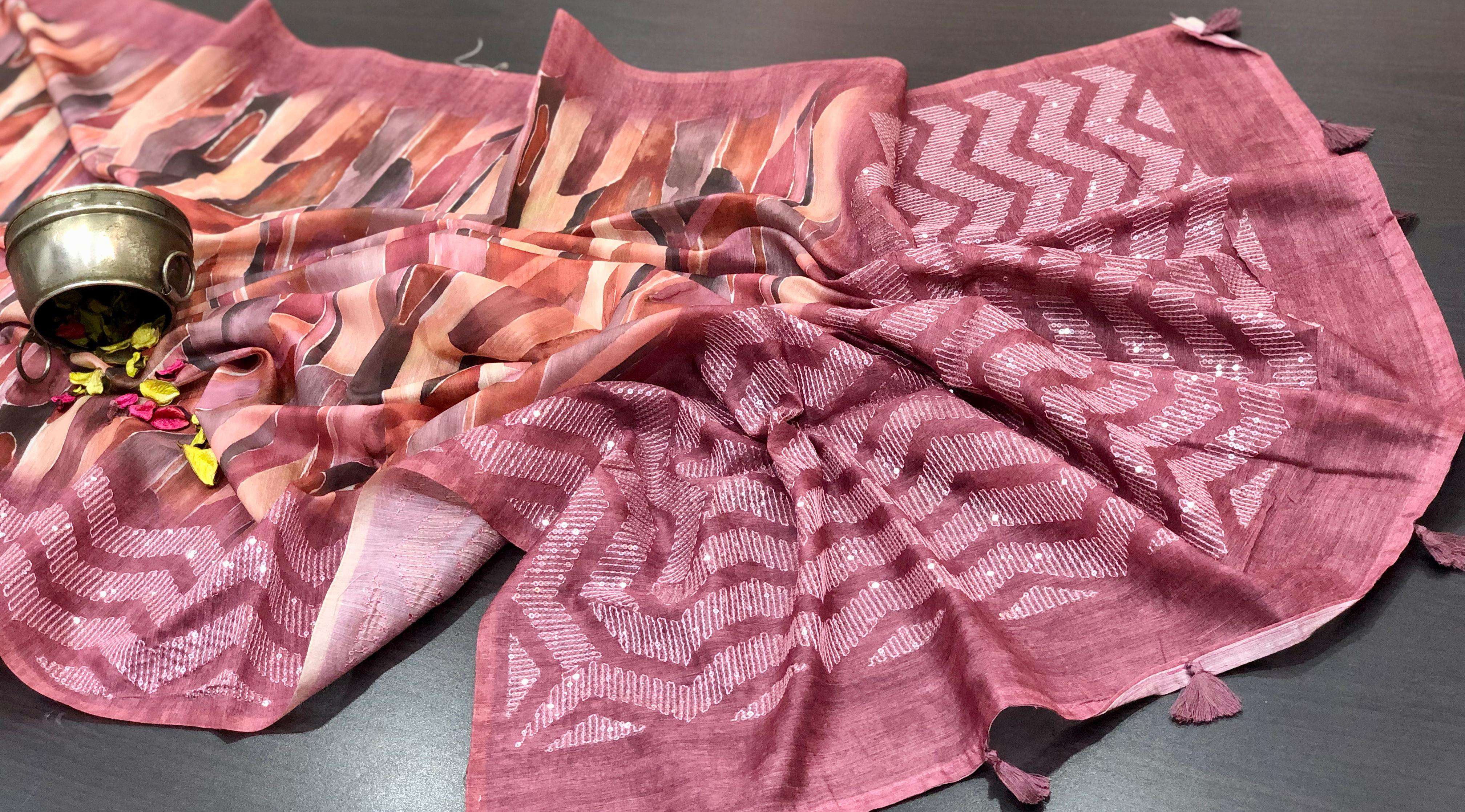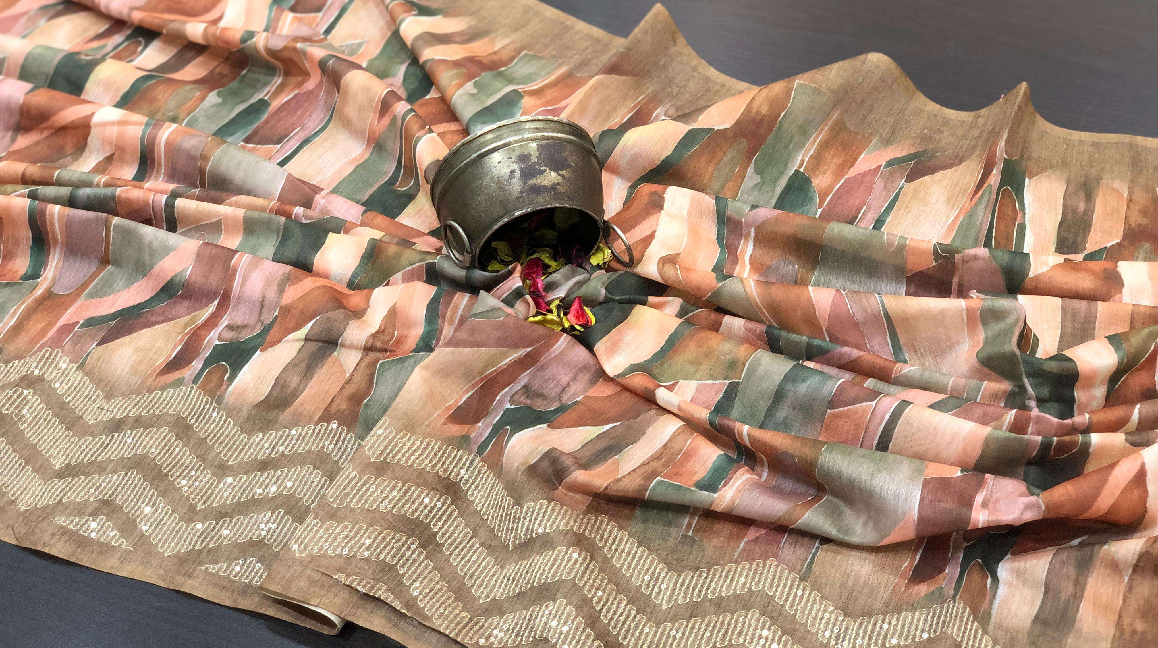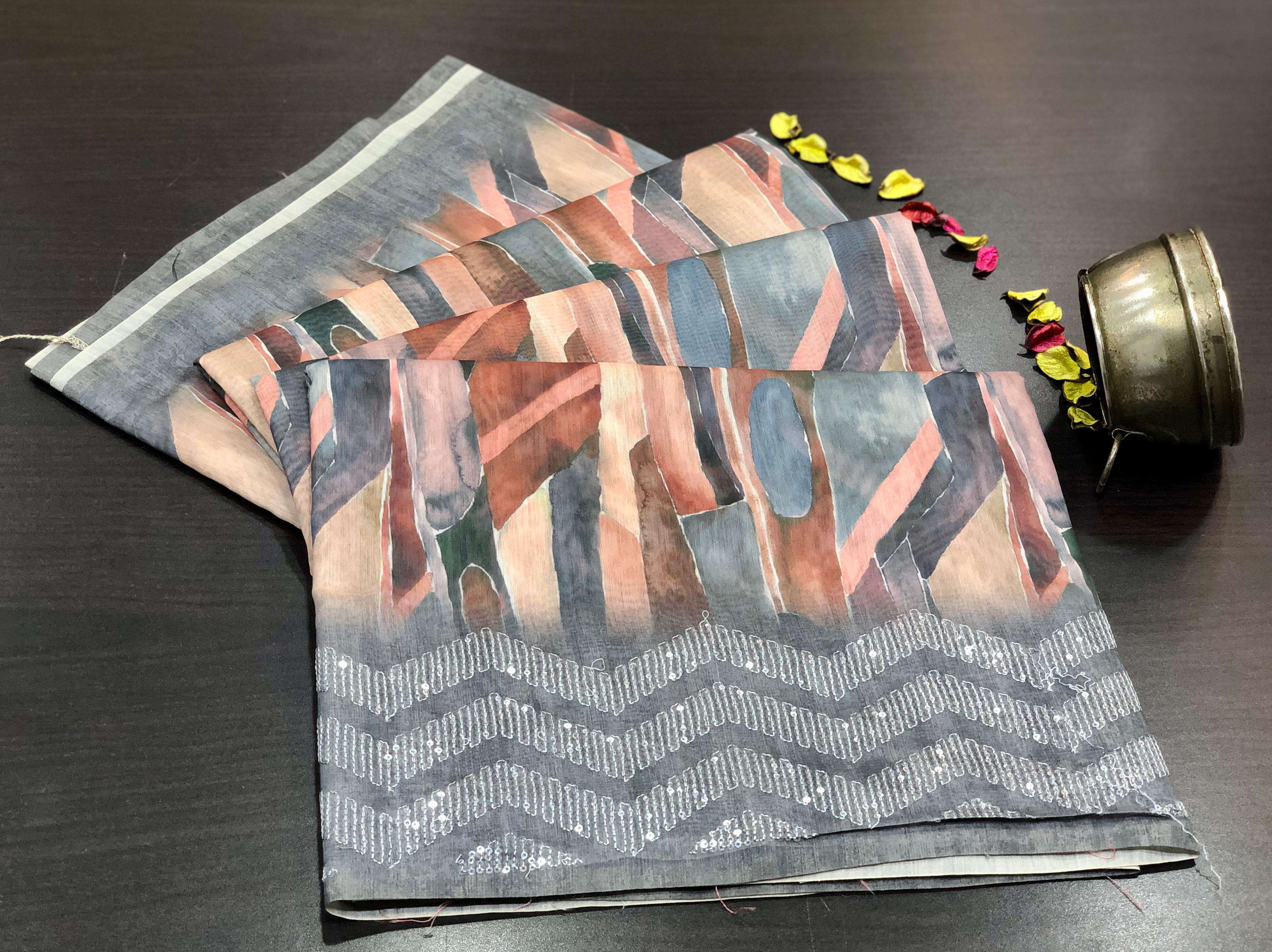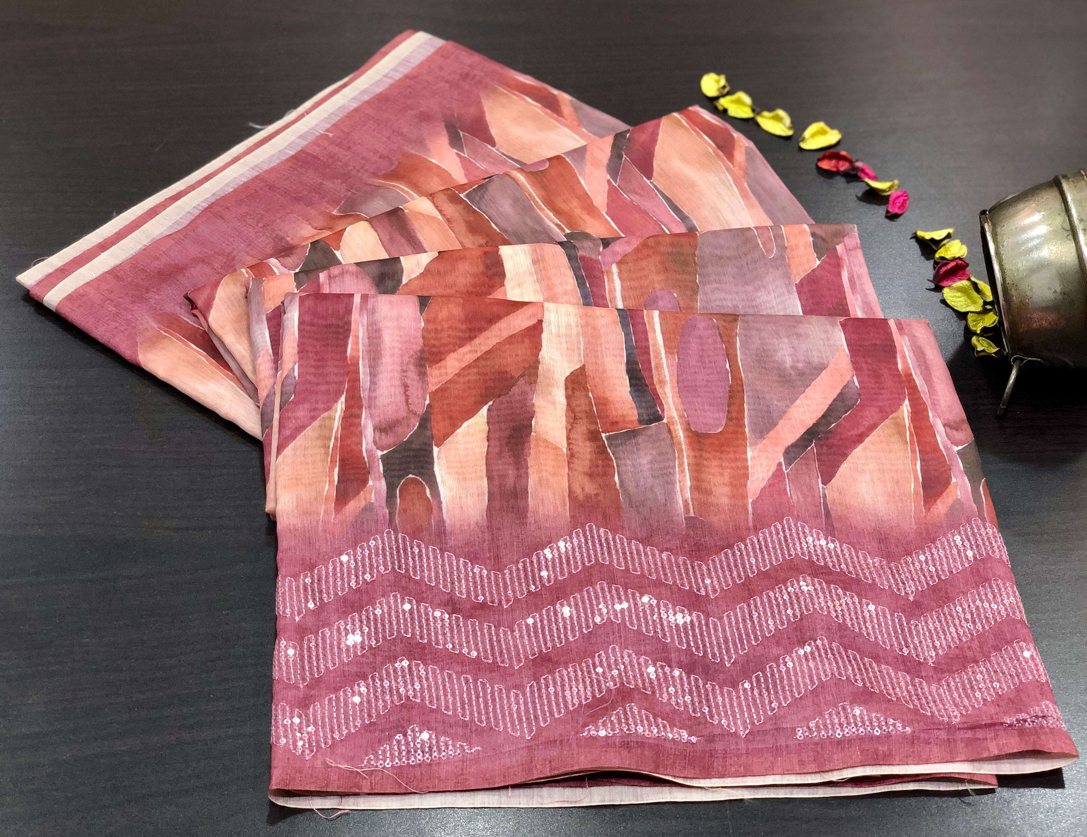 A Digital Printed Tusser Saree features intricate and vibrant patterns created through digital printing techniques on luxurious Tusser silk fabric. Known for its smooth texture and natural sheen, this saree combines traditional elegance with contemporary designs, making it a versatile choice for various occasions. The rich color palette and detailed motifs enhance its beauty, offering a sophisticated and fashionable appeal.
