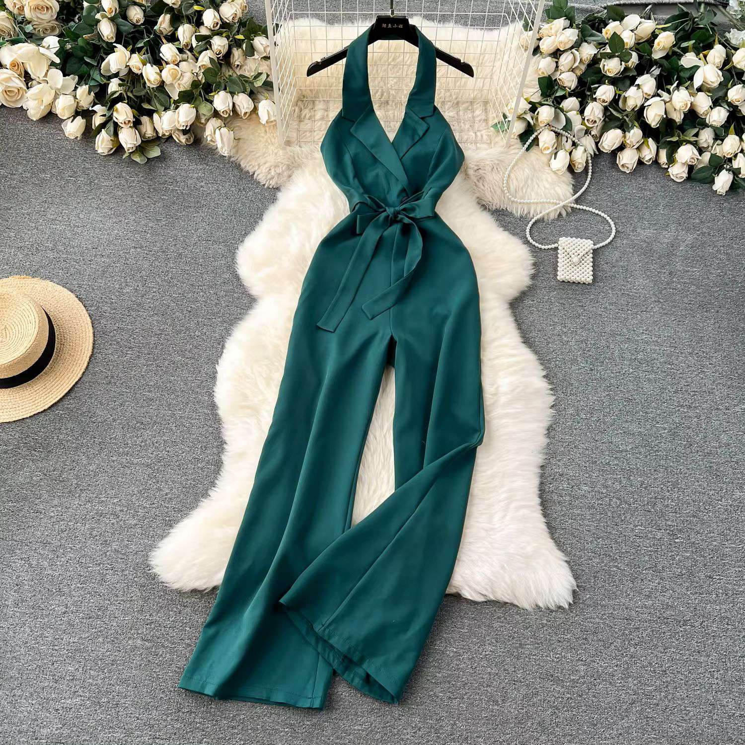 Elegant Halter Jumpsuit For Women High Waist Lace Long Jumpsuit