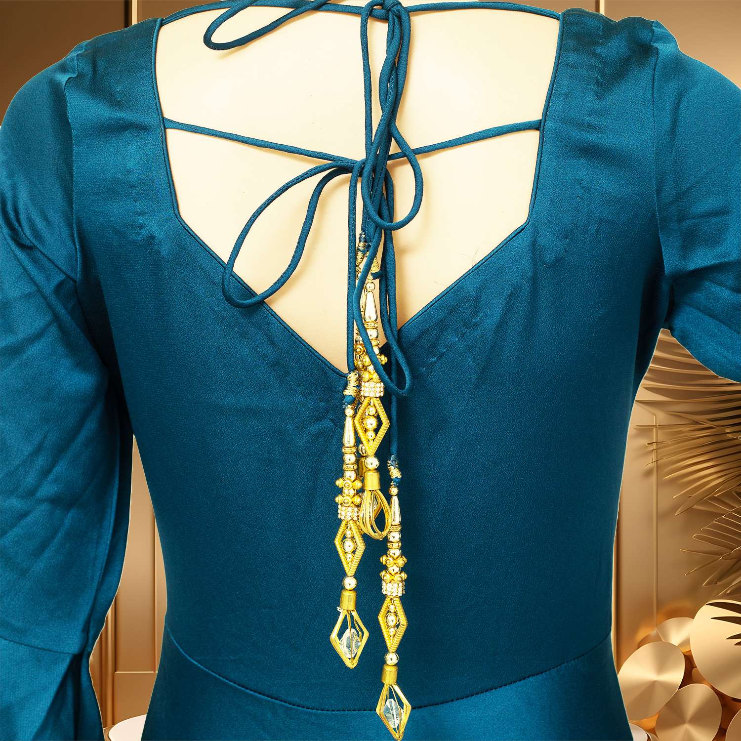 Deep Sea Blue Floor Touch Long Sleeve Gown