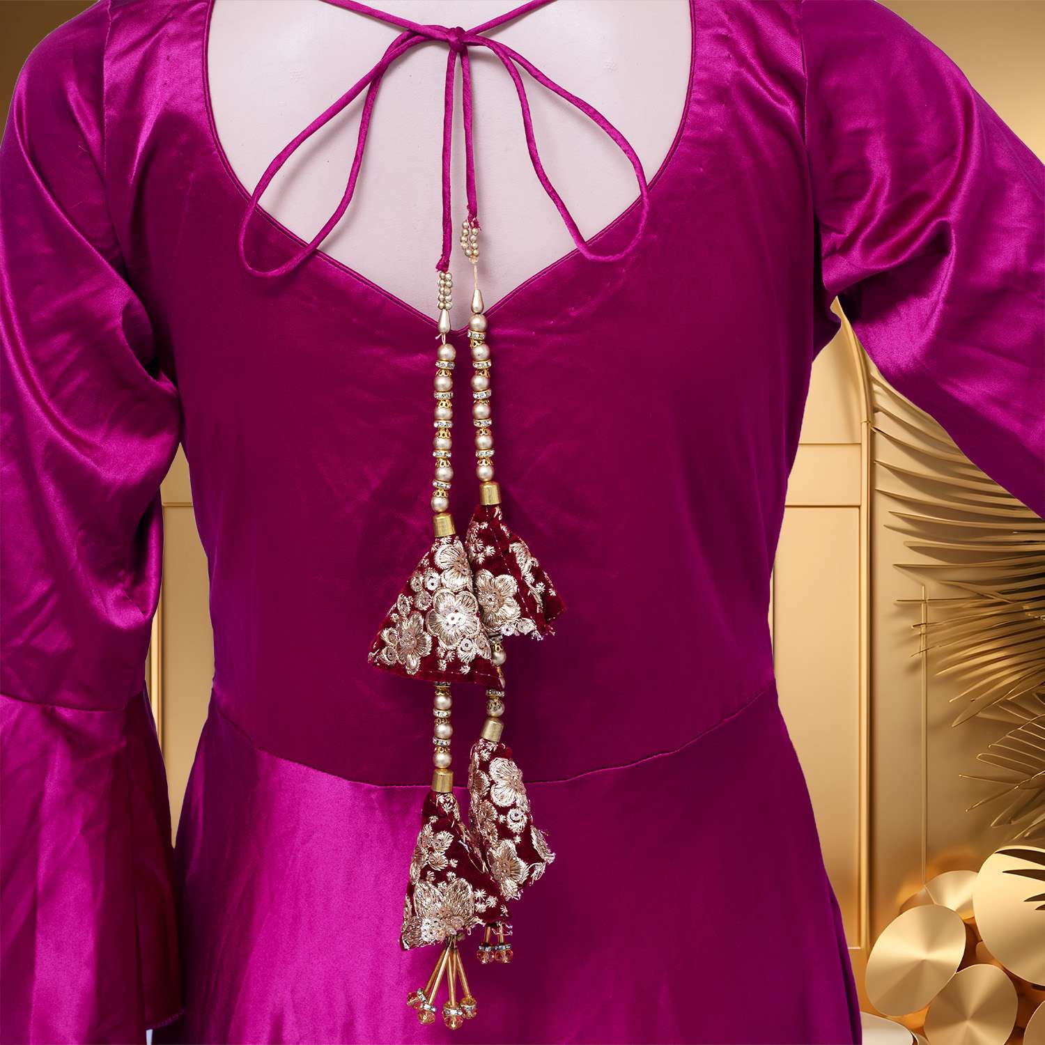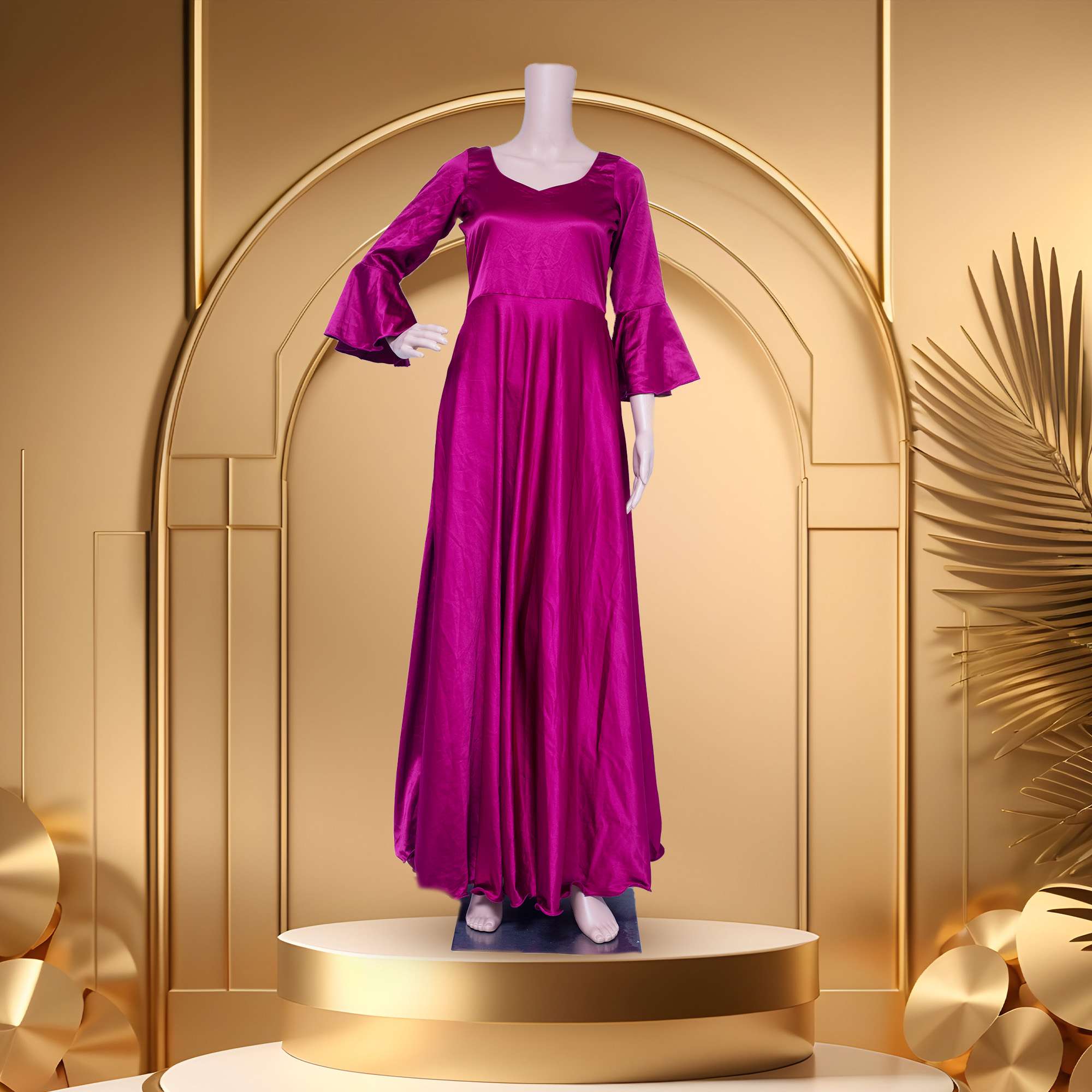 - Length: Floor-touching, suggesting that the gown extends to the floor when worn, providing a formal and sophisticated look.