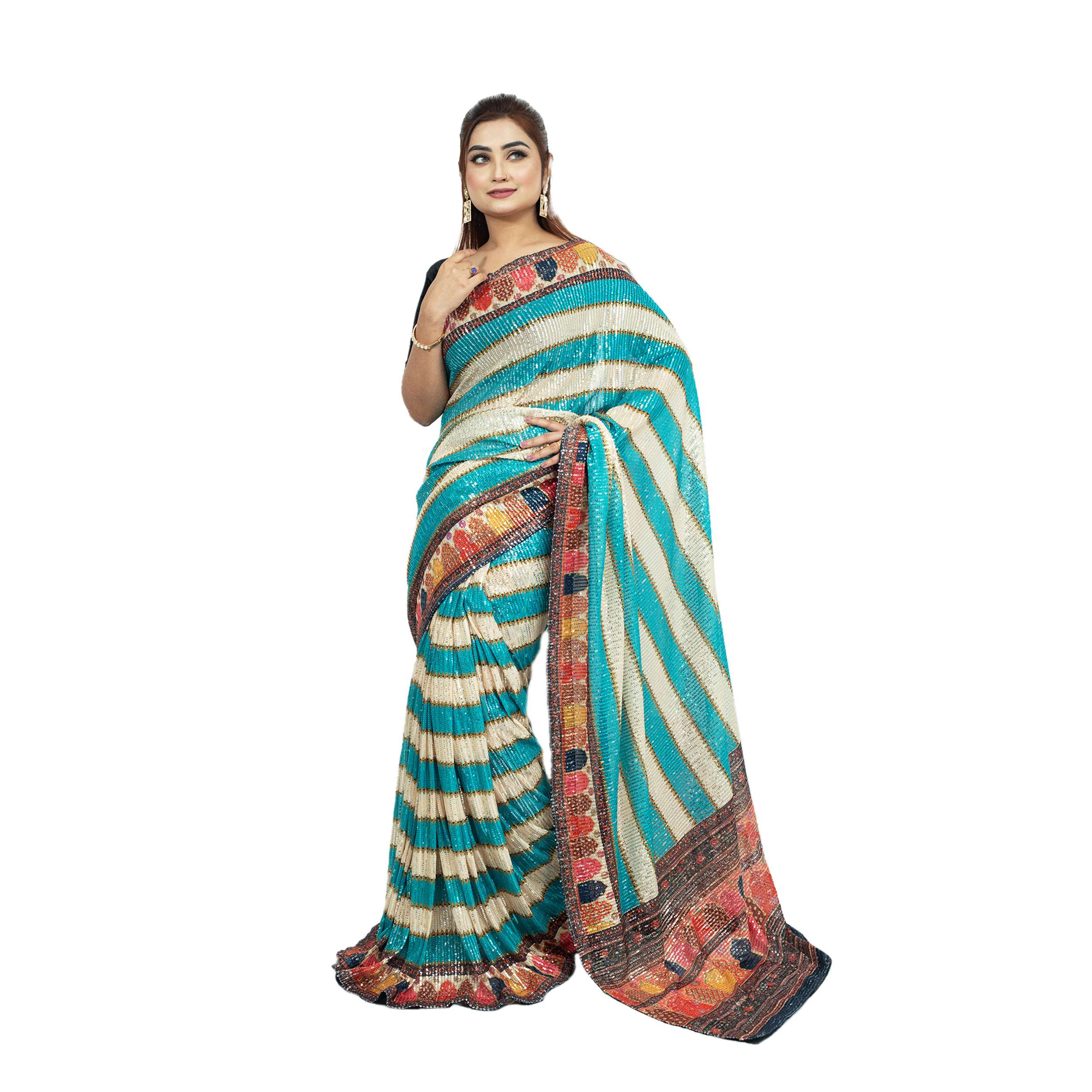 Print: Polka dots, a timeless pattern, adorn the entire saree, creating a visually appealing aesthetic. The dots are evenly spaced and vary in size, adding depth and interest to the fabric.