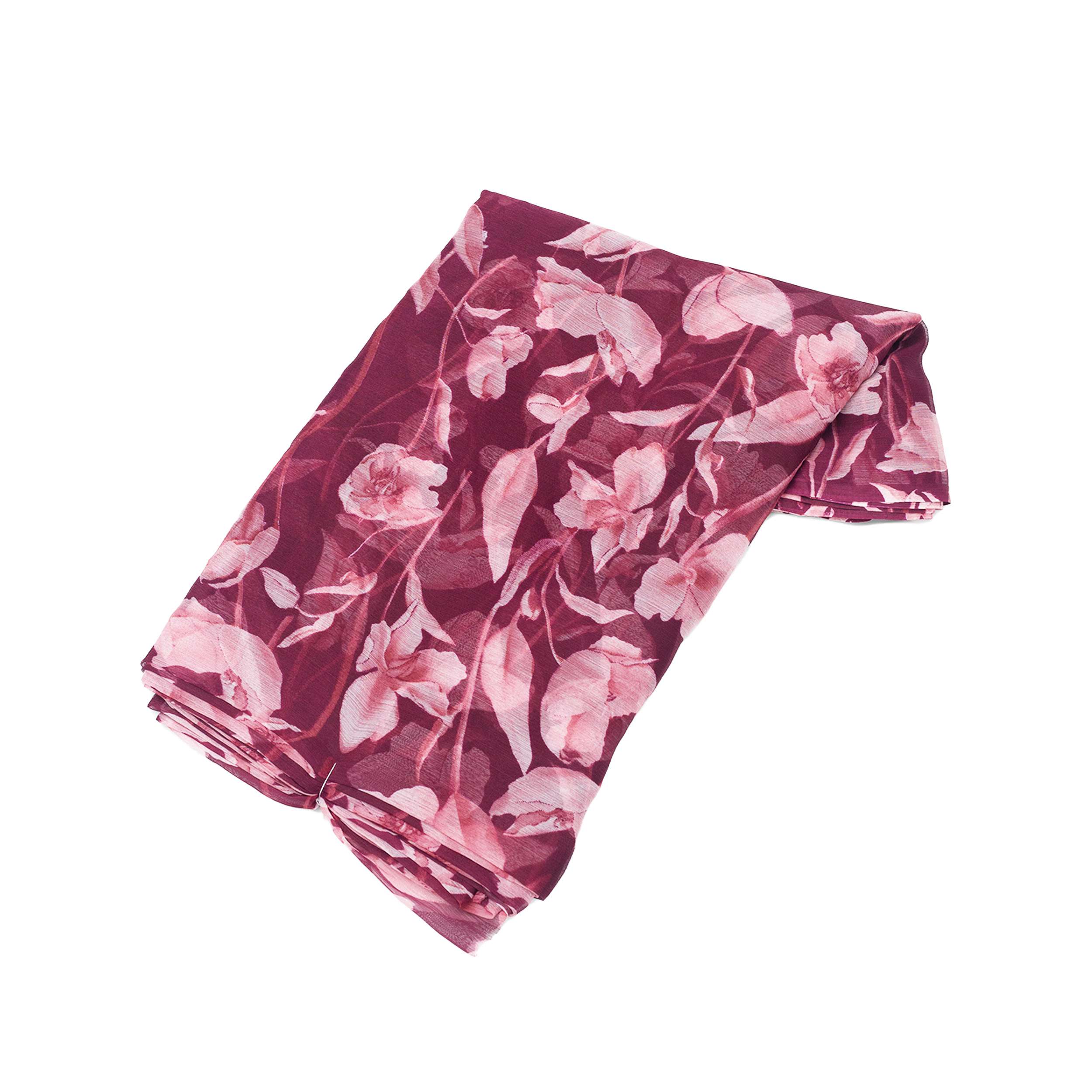 This Maroon Chiffon Saree with floral print embodies elegance and grace. Crafted from lightweight chiffon fabric, it drapes beautifully, accentuating feminine curves while providing comfort. The rich maroon hue exudes sophistication, perfect for evening soirees or special occasions.