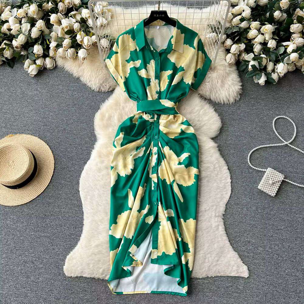 New V-Neck Fashion Banquet Pleat Empire Sheath Dress With Slit Night Dress For women