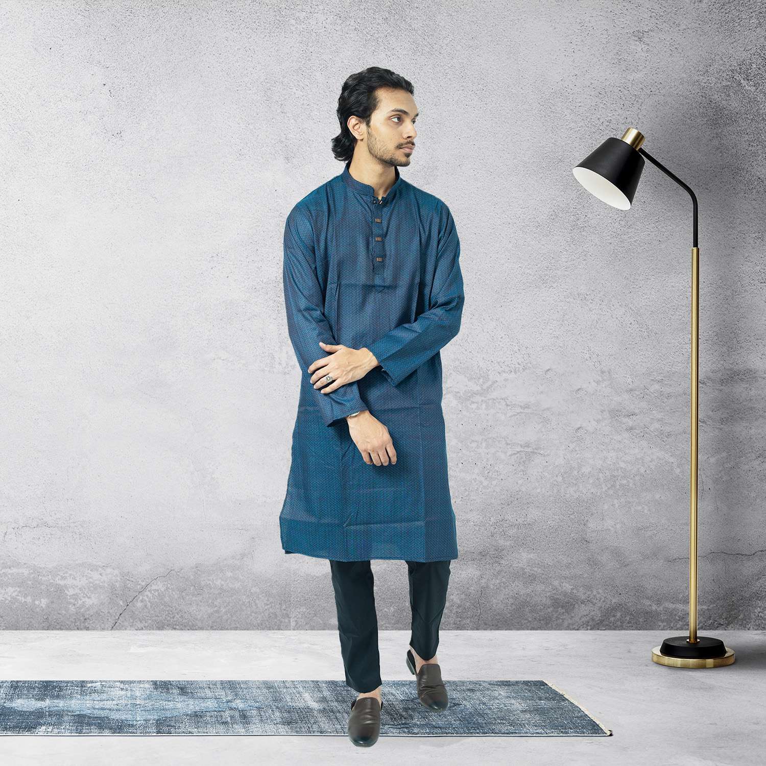 Whether you're attending a cultural celebration, a family gathering, or a casual outing, this printed semi-long cotton Panjabi is sure to make a statement. Pair it with your favorite trousers or jeans for a stylish yet traditional ensemble that reflects your individuality and taste.