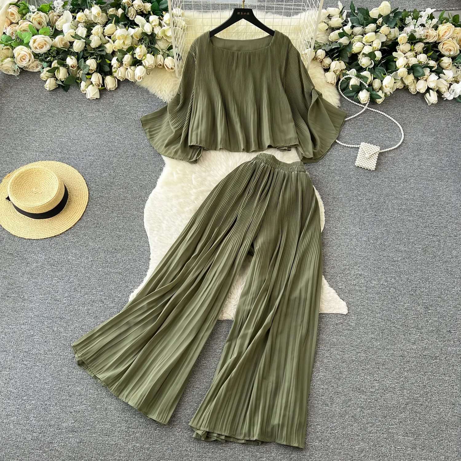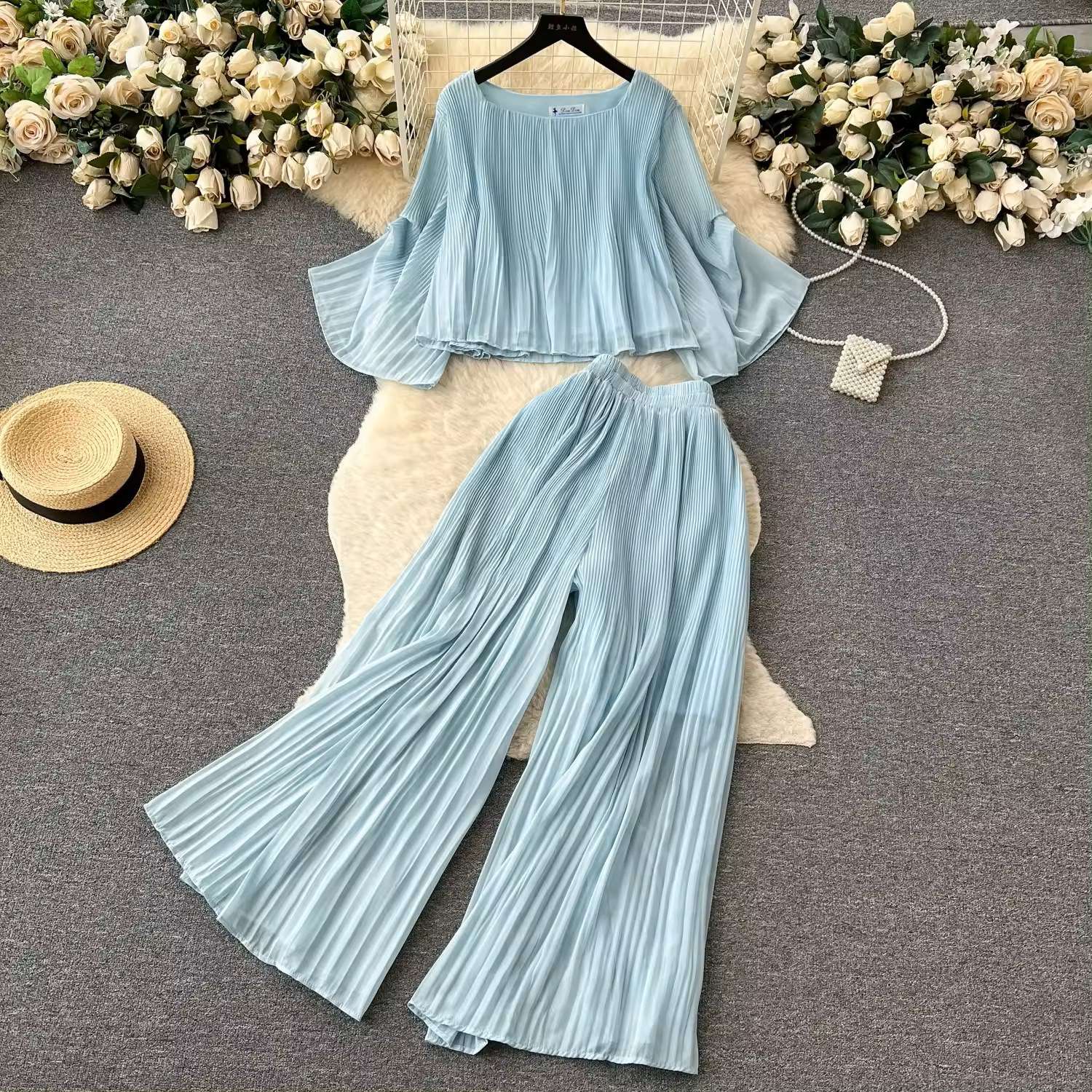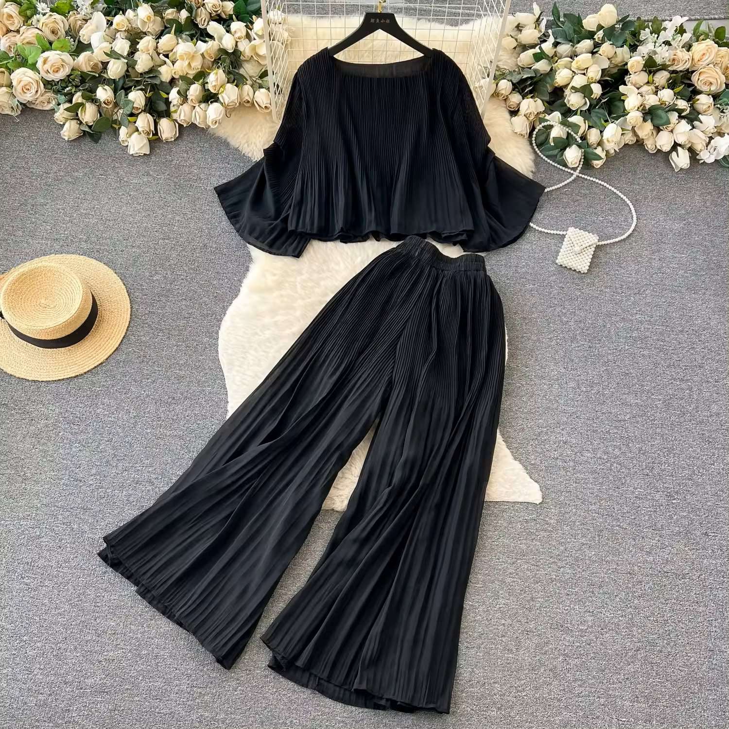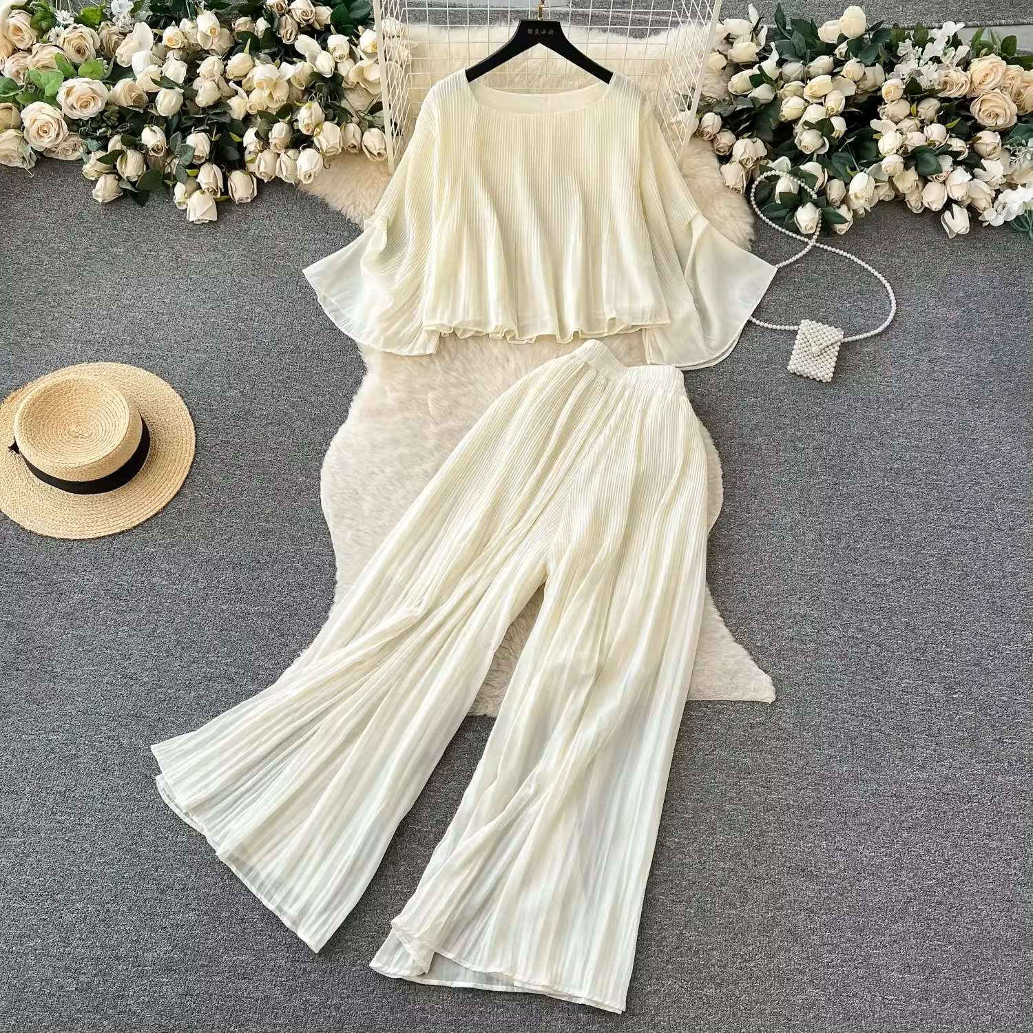 Retro Fashion Set Women's Summer Loose Short T-Shirt + High Waist Long Pants