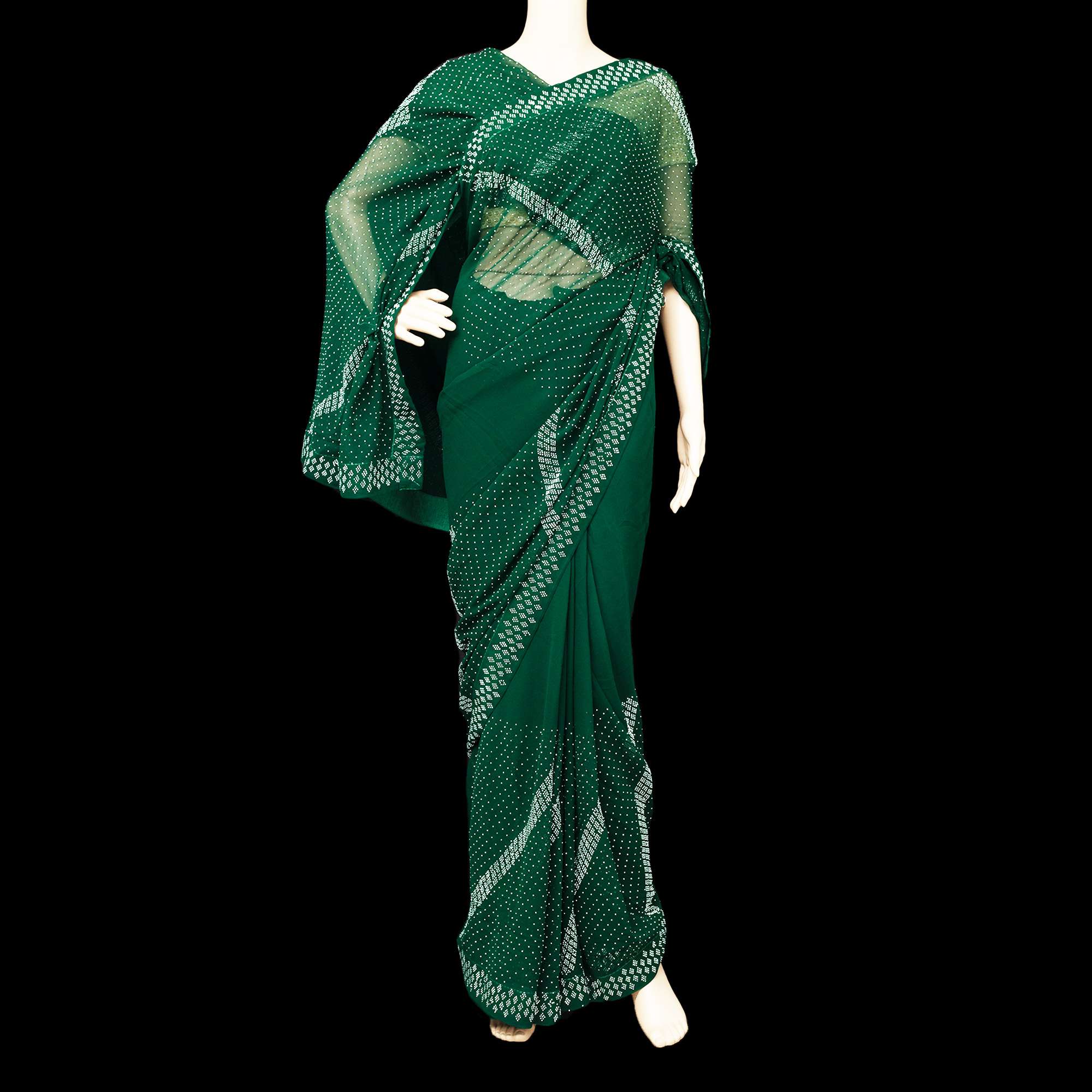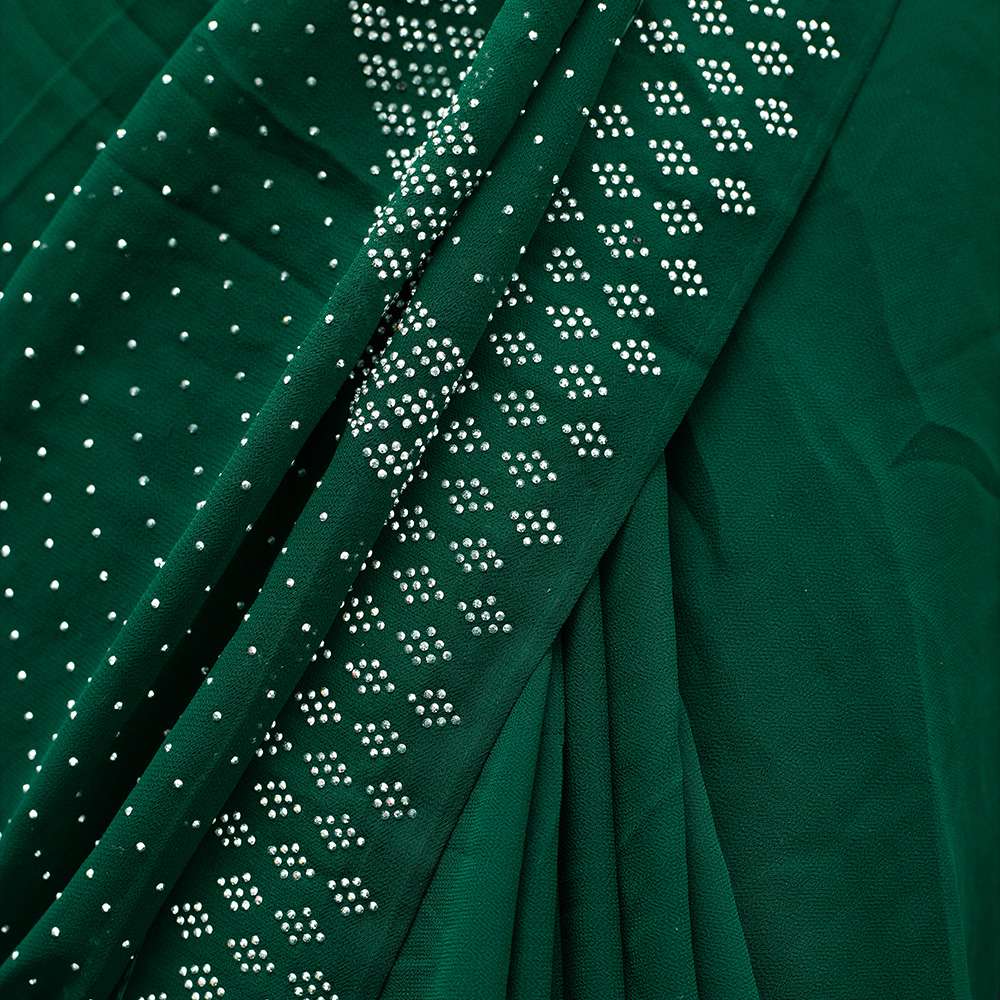 Stunning Emerald Green Color Embellished Georgette Party Saree