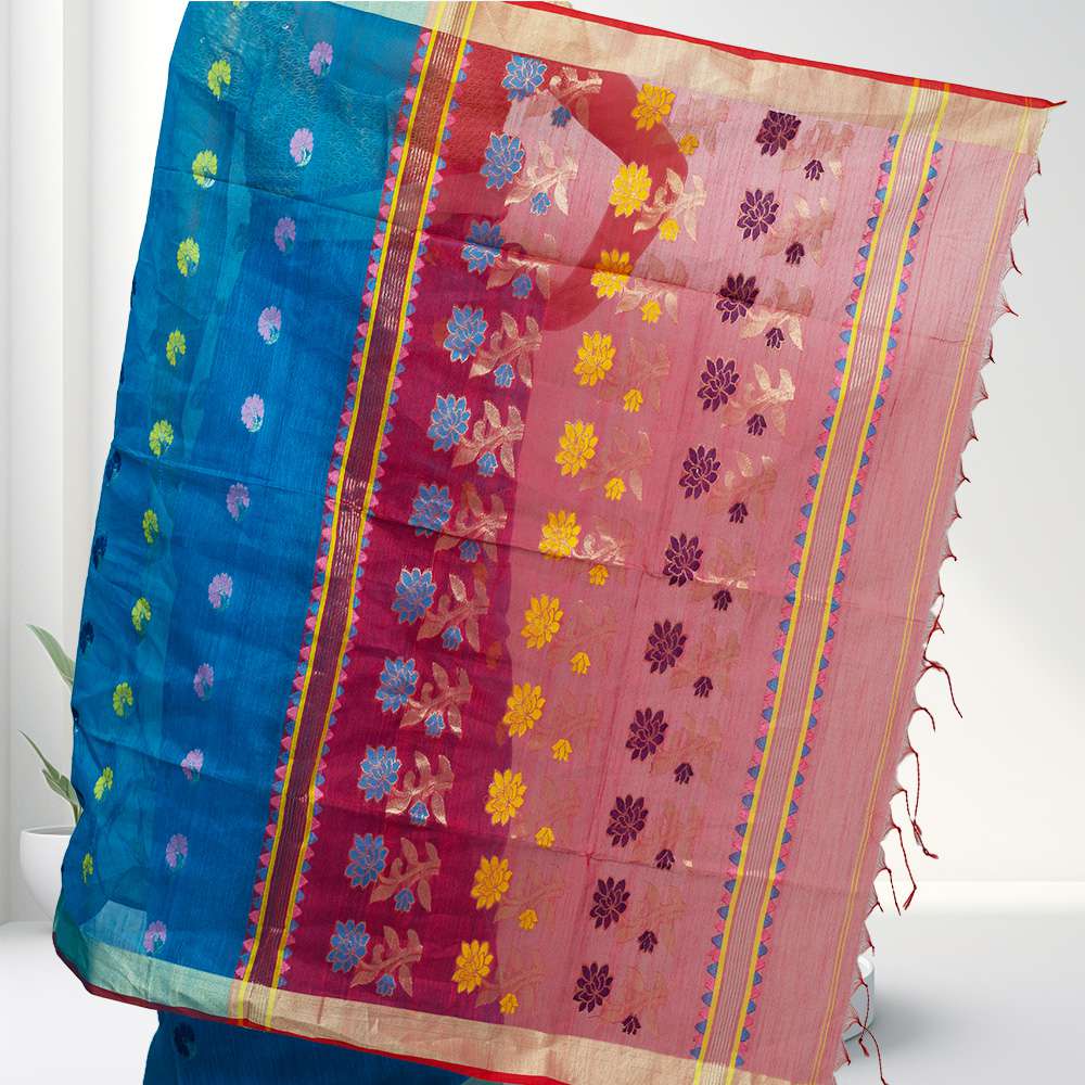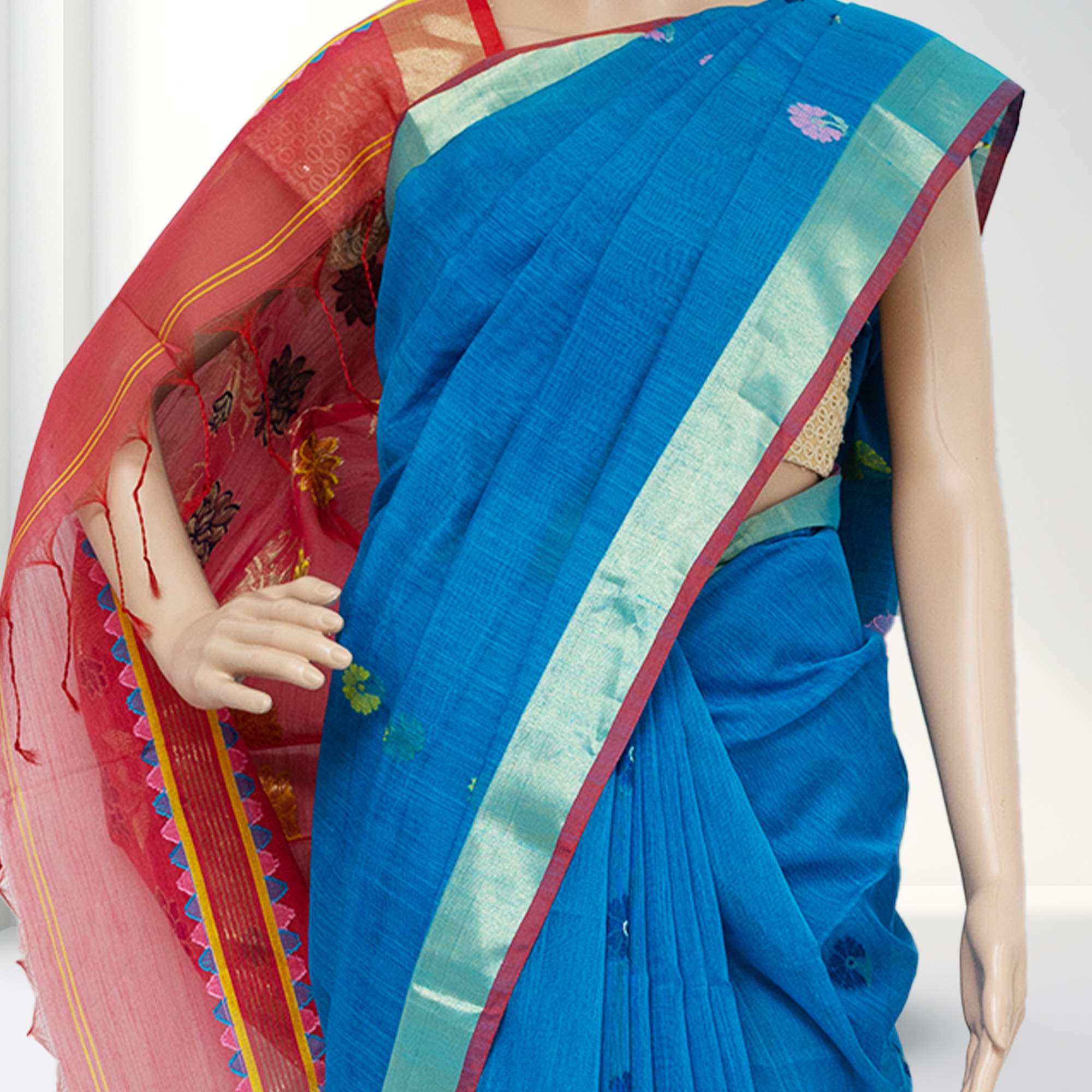 EXCLUSIVE LIGHT COBOLT BLUE COTTON SLAB SAREE