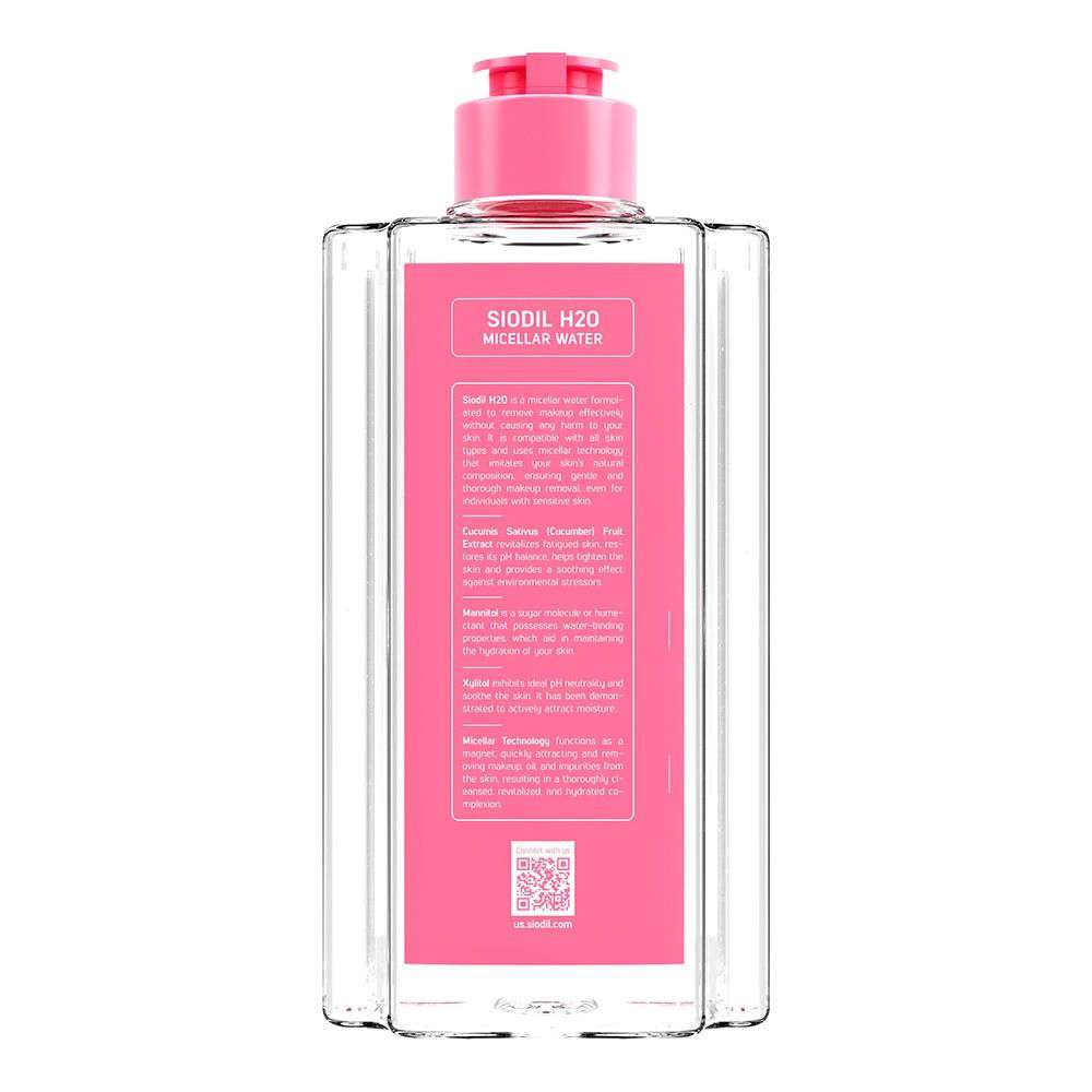 SIODIL H2O Micellar Water is intended to cleanse and purify the epidermis by effectively removing grime, debris, and makeup