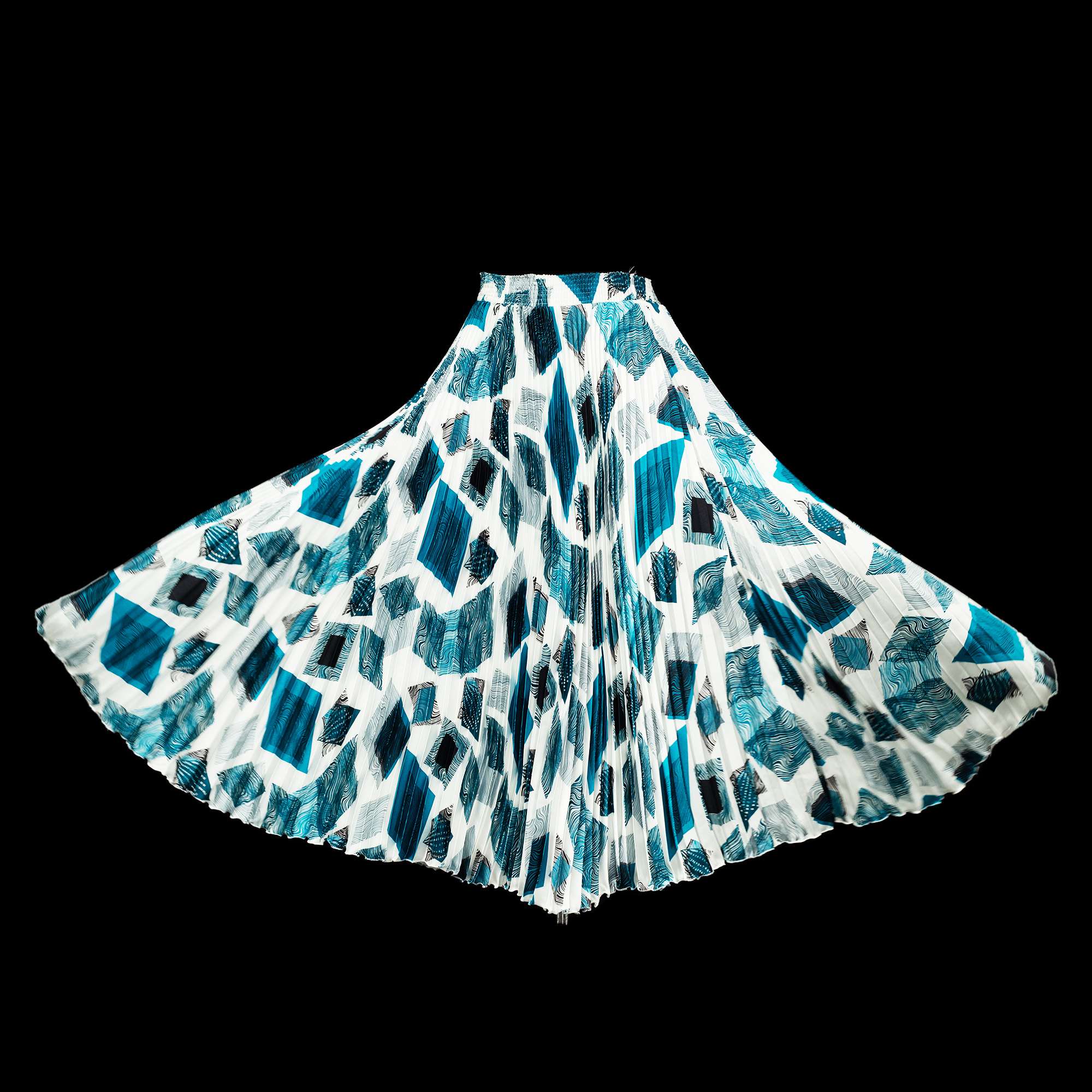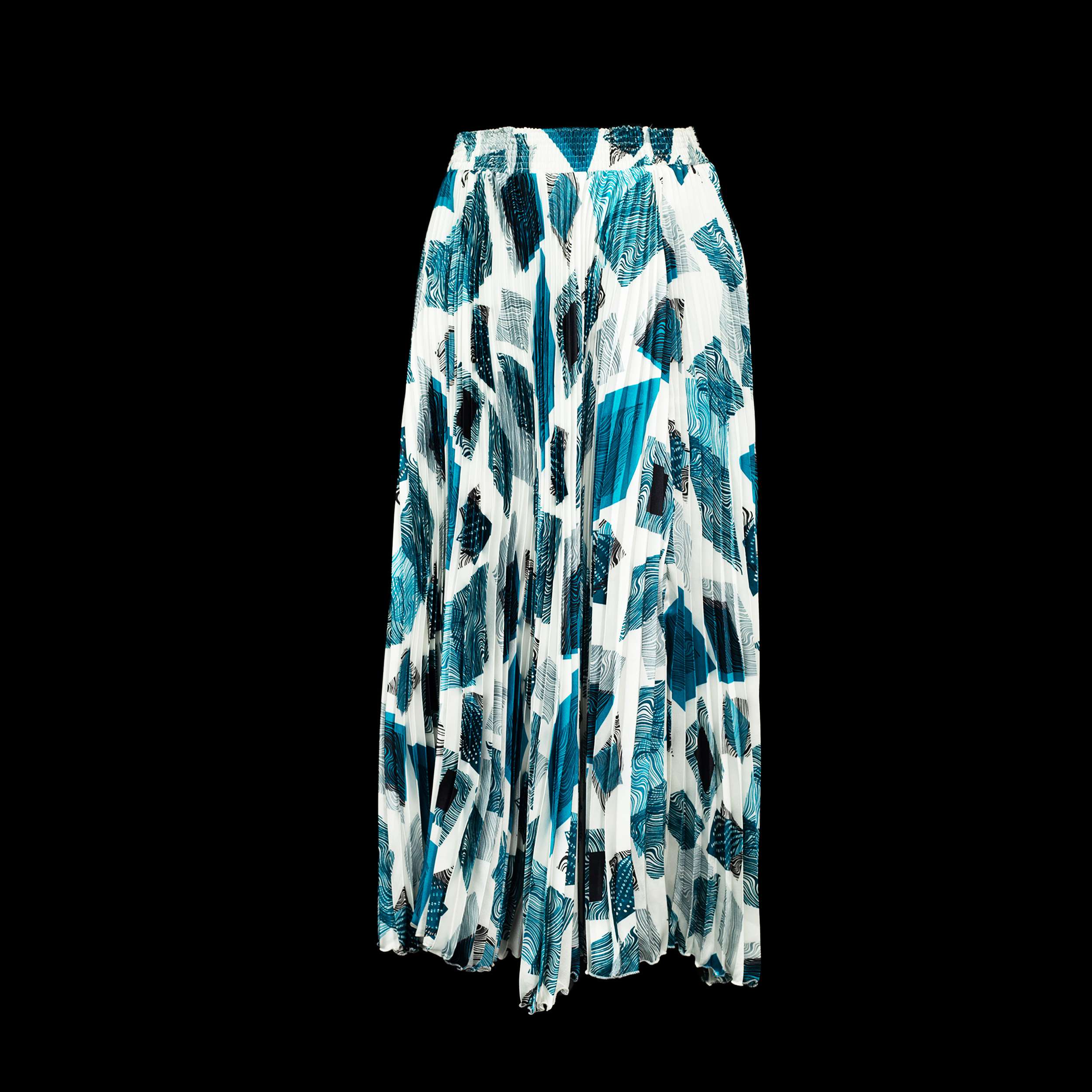 This printed skirt is a stunning addition to any wardrobe, offering a blend of elegance and style. Crafted with meticulous attention to detail, it features a vibrant print that is sure to turn heads wherever you go. The skirt is designed to flatter your silhouette, with a fitted waist that accentuates your curves before cascading into a graceful flare. Its knee-length cut adds a touch of sophistication, making it suitable for both casual outings and more formal occasions.