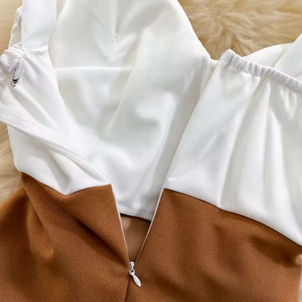 Collision Splicing Detail: The dress features unique collision splicing details, creating a visually striking contrast and adding an edgy vibe to the overall look.