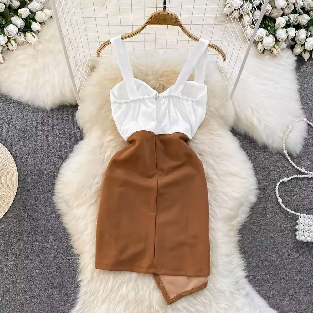 Embrace the spirit of summer with our stunning Bustier Halter Collision Splicing Tight Irregular Dress. This dress is designed to make you stand out, combining bold design elements with a touch of elegance. Whether you're heading to a beach party, a summer wedding, or a casual day out, this dress is your go-to choice for effortless style.