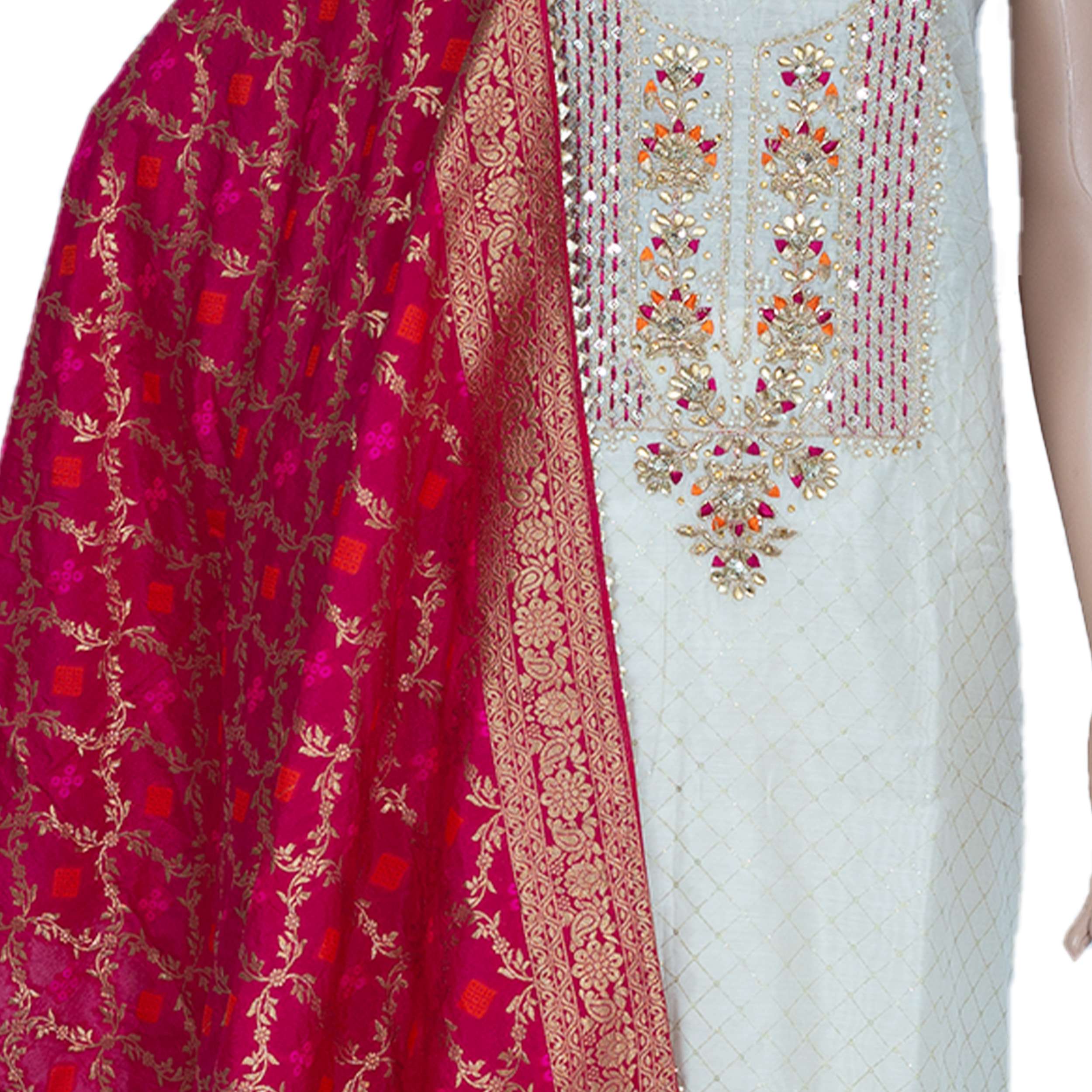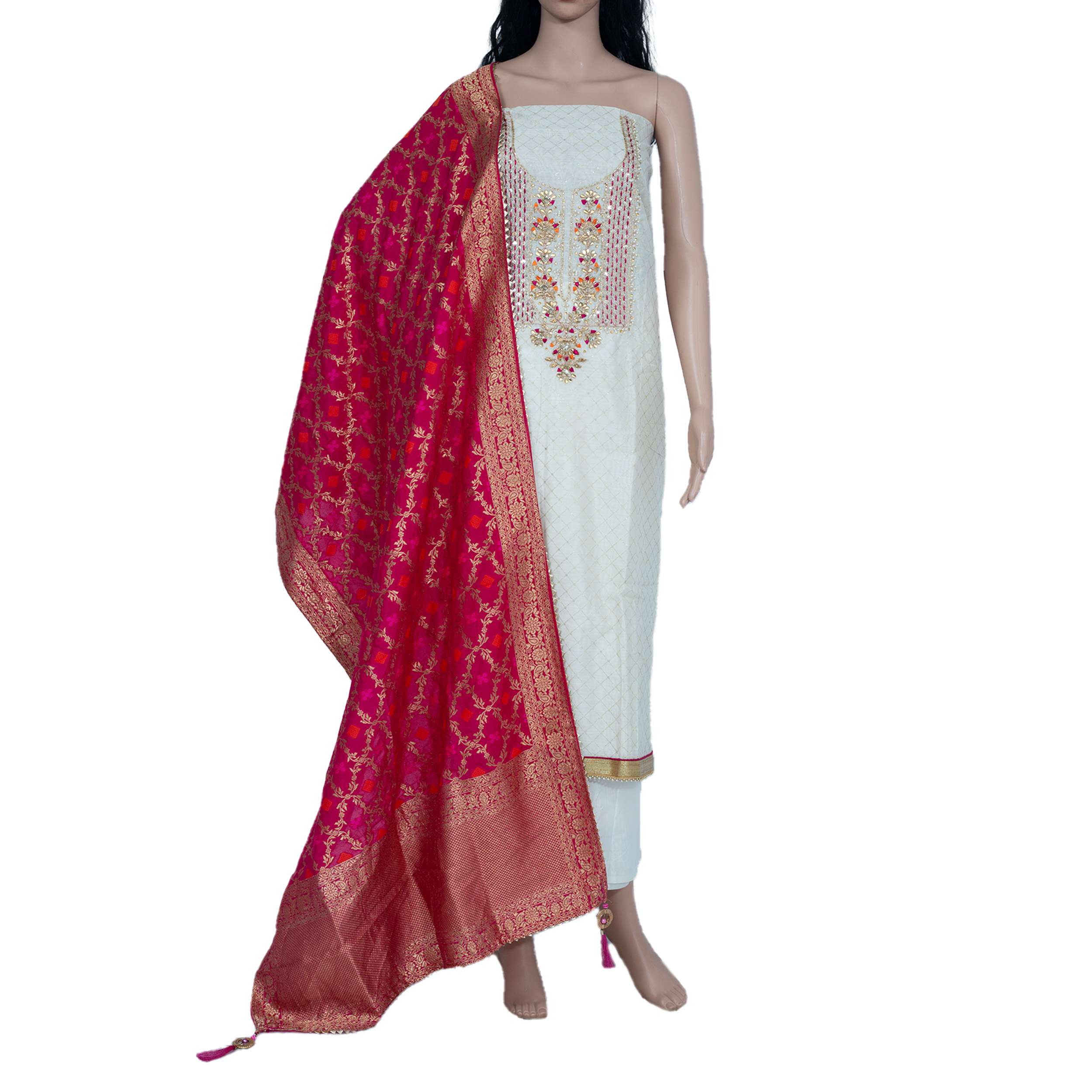 Embroidery: Embroidery involves decorating fabric with needle and thread, creating intricate patterns and designs. In this case, the kamiz likely features embroidery work, which could be done using various techniques such as threadwork, mirror work, or zardozi (metallic thread) embroidery.
