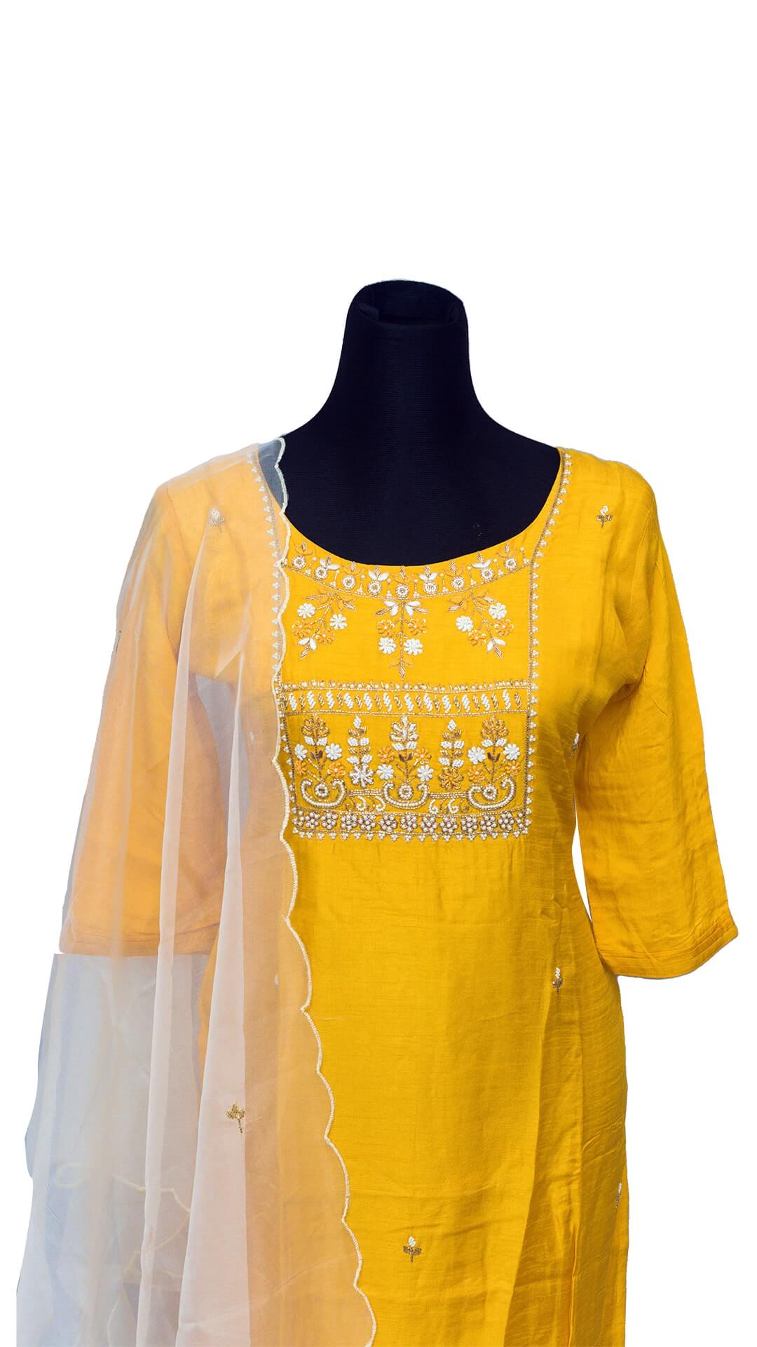 Neckline, hand and chest worked witl laser cut georgette Dupatta